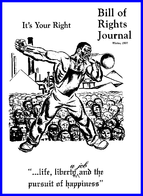 The Hugo Gellert illustration shown below appeared on the cover of the Winter, 1997 issue of Bill of Rights Journal, the theme of which was the NECLC campaign for Employment As a Constitutional Right...the right to dignity and a decent wage.